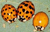Introduced to the United States in the 1970s and 1980s as an agricultural pest deterrent, Asian ladybird beetles are voracious insect feeders that can eat up to 270 aphids daily. A serious fall nuisance in New Jersey, lady bugs can overwhelm buildings, inundating floors and decks. Although considered harmless, lady bugs can bite. Large swarms can be vacuumed. Avoid crushing as lady bugs release a foul odor when frightened and their blood can stain walls and fabrics.
